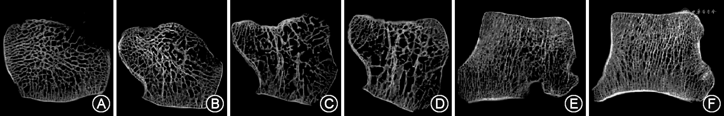 注:BV/TV为骨体积分数;Tb.Th为骨小梁厚度;Tb.N为骨小梁数目;Tb.Sp为骨小梁间距;TPF为骨小梁模式因子