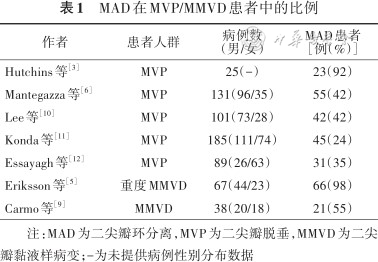 注:MAD为二尖瓣环分离,MVP为二尖瓣脱垂,MMVD为二尖瓣黏液样病变;-为未提供病例性别分布数据