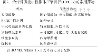 治疗骨质疏松性椎体压缩骨折(OVCFs)的常用药物