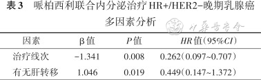 哌柏西利联合内分泌治疗HR+/HER2-晚期乳腺癌多因素分析