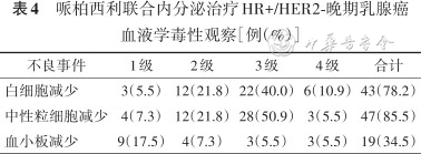 哌柏西利联合内分泌治疗HR+/HER2-晚期乳腺癌血液学毒性观察[例(%)]
