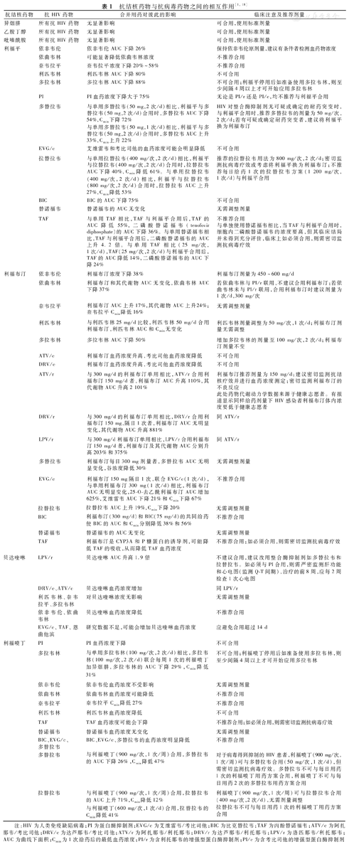 | 利匹韦林 | 与利匹韦林25 mg/d比较,利匹韦林50 mg/d合用利福布汀,利匹韦林AUC和Cmin无变化 | 利匹韦林剂量调整为50 mg/次,1次/d;利福布汀剂量无需调整 | |