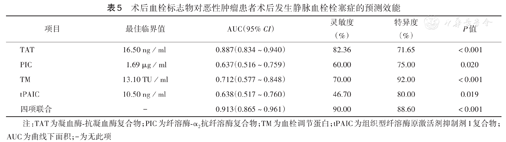术后血栓标志物对恶性肿瘤患者术后发生静脉血栓栓塞症的预测效能