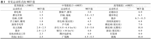 注:MET:代谢当量 MET:metabolic equivalent of task