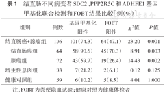 | 组别 | 例数 | 基因甲基化阳性 | FOBT阳性 | χ 2值 | P值 | |