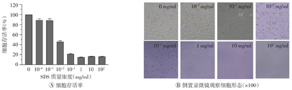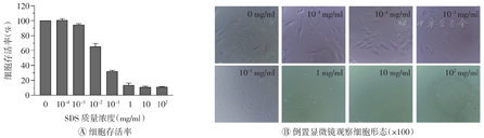 离子型表面活性剂SDS、非离子型表面活性剂Triton X-100(西安天正药用辅料有限公司),两性离子型表面活性剂SB-10(上海阿拉丁生化科技股份有限公司),噻唑蓝(上海碧云天生物技术有限公司),α-MEM培养基、质量浓度为2.5 g/L的胰蛋白酶(美国HyClone公司),青链霉素双抗溶液(美国Gibco公司),胎牛血清(杭州四季青生物有限公司),异丙醇(上海凌峰化学试剂有限公司),无菌磷酸盐缓冲液(phosphate buffered saline, PBS)(武汉赛维尔生物科技有限公司),L-929细胞、MC3T3-E1细胞(上海生命科学研究院细胞中心)。