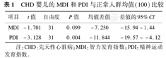 CHD婴儿的MDI和PDI与正常人群均值(100)比较