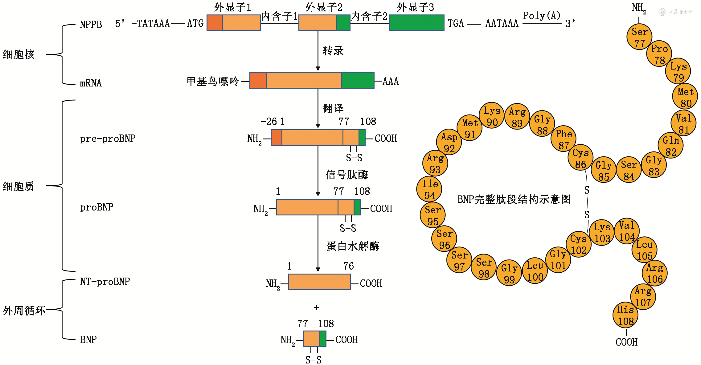 注:BNP:B型利钠肽;NT-proBNP:N末端B型利钠肽前体;NPPB:人BNP编码基因;mRNA:信使RNA;pre-proBNP:proBNP前体;proBNP:BNP前体