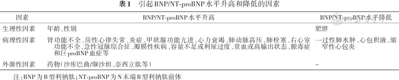引起BNP/NT-proBNP水平升高和降低的因素