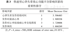 对快速型心律失常发作时持续时间、发作频次、发作时最高心率及发作时心率较基础心率变化程度对心功能的影响程度排序,结果表明,心律失常的持续时间对心功能影响最大,其次为快速型心律失常发作时的最高心率(表3)。