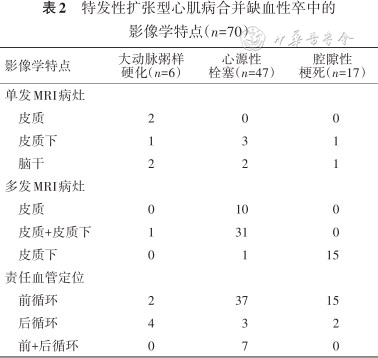 特发性扩张型心肌病合并缺血性卒中的影像学特点(n=70)