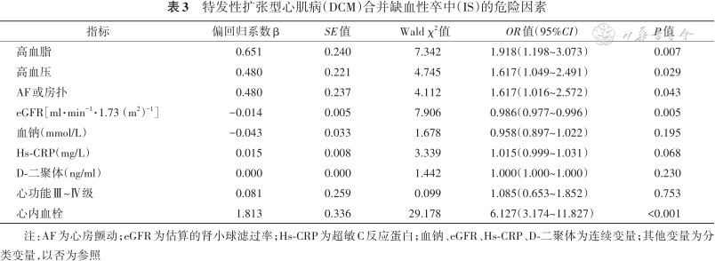 特发性扩张型心肌病(DCM)合并缺血性卒中(IS)的危险因素