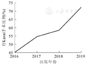 按照出院年份分组,描述各年份患儿选择Kasai手术的比例情况(结果见表2)。比较各组患儿按照年份先后顺序选择Kasai手术的比例变化趋势情况,绘制Kasai手术比例随年份变化的趋势图,见图3。对Kasai手术比例按年份的变化趋势进行Cochran-Armitage趋势检验,结果显示趋势变化有统计学意义(P<0.001),Kasai手术的比例呈逐年升高的趋势,由2016年45.2%上升至2019年72.3%。