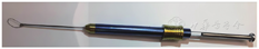 Reduce the diameter of the metal loop by pressing the end of the handle, after the snare is in the eye, release the handle to increase the diameter of the loop according to the size of the foreign body.