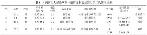 4例新生儿感染病例一般情况和宏基因组学二代测序结果