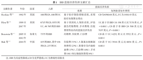 IBD直接经济负担文献汇总
