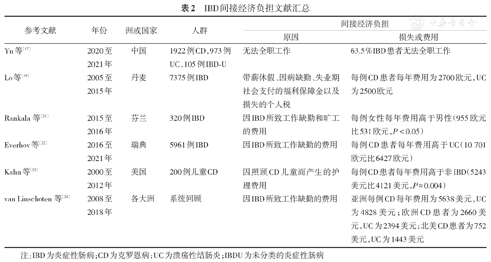 IBD间接经济负担文献汇总