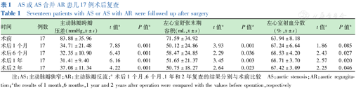 Seventeen patients with AS or AS with AR were followed up after surgery