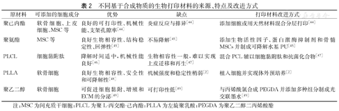 不同基于合成物质的生物打印材料的来源、特点及改进方式