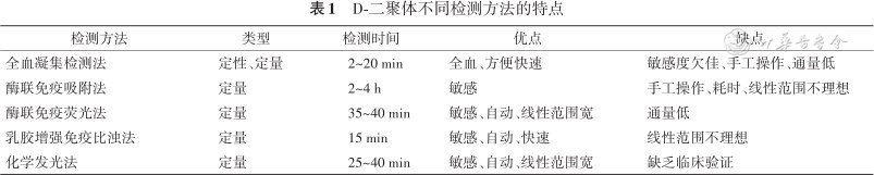 D-二聚体不同检测方法的特点