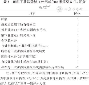 预测下肢深静脉血栓形成的临床模型Wells 评分标准[44]