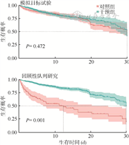 在无法进行RCT时,模拟目标试验为合理使用观察性研究数据提供了一个更好的思路。需要注意的是,在模拟过程中应严格保证研究对象满足纳入排除标准入组、接受干预分配、开始随访的时间三者同步,否则将会导致的模拟失败。本研究示例中的零时刻的确定并不复杂(研究对象入院时间即为零时刻),但是当研究时间跨度长的慢性疾病时,零时刻的确定相对复杂且困难。因此需要合理使用嵌套实验、宽限期、克隆等方法确定正确的零时刻。模拟目标试验在信息收集全面的大型数据库中尤其适用。因此,该方法在临床研究领域有广泛的应用前景,可以很好地利用临床数据得到可靠结论。除此以外,该方法也适用于慢性疾病的病因探究,利用队列数据进行模拟。另外,由于观察性研究受伦理约束较少,可以在更广的范围内进行模拟目标试验。模拟目标试验存在局限性。一是模拟目标试验本质上仍属于观察性研究,在RCT中可以做到完全随机化分组,而在模拟目标试验中只能尽可能全面地平衡干预组和对照组间的混杂因素,相当于事后随机化。因此其对观察数据有较高的要求,需要数据内容全面,包含所研究的内容及相关混杂因素。所平衡的混杂因素越全面,研究结局与真实世界结局越接近。二是对数据量有一定的要求,由于纳入标准严格、数据缺失、失访等因素,最终纳入研究的人数相对于数据库总人数可能较少,因此不一定适用于小型数据库。