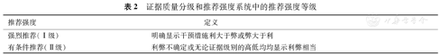 | 有条件推荐(Ⅱ级) | 利弊不确定或无论证据级别的高低均均显示利弊相当 |