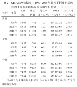 | 性别 | 年份 | PAF(%) | 死亡例数 | 死亡率(1/10万) | DALY(人年) | DALY率(1/10万) |