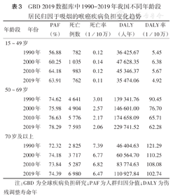 本研究还存在一定的局限性。虽然目前GBD数据库已广泛应用,但与各个国家的统计数据仍存在误差;GBD 2019对各种疾病指标的估计采用的是综合建模方法,结果能够代表我国整体的水平,但缺少各省代表性的GBD数据,同时也没有我国农村和城市的数据,无法对城乡的差异进行分析。另外本研究的前提是吸烟具有独立的效应,但往往吸烟会和其他危险因素同时存在且可能存在联合作用。