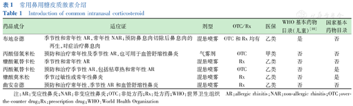 目前国内常用的鼻用激素包括布地奈德、丙酸倍氯米松、糠酸氟替卡松、丙酸氟替卡松、糠酸莫米松、曲安奈德(表1[10])。