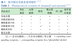 鼻用激素的辅料包括抑菌剂、矫味剂、乳化剂、触变剂等。苯扎氯铵与山梨酸钾是常用的抑菌剂。苯扎氯铵可能会加重药物性鼻炎的严重程度,导致鼻黏膜肿胀加剧或诱发过敏,同时有苦味[11,12];山梨酸钾味道偏中性,是相对无毒的辅料[12]。苯乙醇可掩盖不适的气味,但可导致鼻黏膜干燥和刺激,引起鼻出血[12]。丙二醇有刺激性气味,可能发生接触性皮炎[12]。聚山梨酯为乳化剂可诱发过敏[12]。羧甲基纤维素在制剂中发挥触变剂的作用,保证鼻用激素在静止状态下有较高的黏度,因此用前须将药液摇匀,使鼻用激素以薄雾形式沉积在鼻黏膜。鼻用激素的制剂辅料存在一定差异(表2[12,13]),对制剂辅料存在过敏的患儿注意鼻用激素品种的选择。
