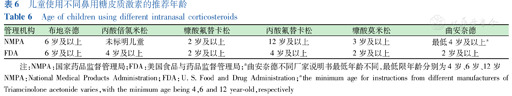 儿童使用不同鼻用糖皮质激素的推荐年龄