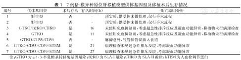 7例猪-猴异种原位肝移植模型供体基因型及移植术后生存情况