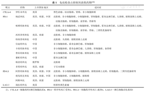 注:CTLA-4—细胞毒性T淋巴细胞抗原4;PD-1—程序性死亡受体1;PD-L1—细胞程序性死亡-配体1;LAG-3—淋巴细胞活化基因3