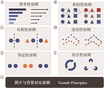 格式塔原则(Gestalt Principles)是视觉心理学中的经典原则[11, 12],其观点为人们能够通过视觉活动,将观察到的对象加以简化、组合、抽象以及分离,如人们观察到各种颜色时,往往会联想到具体的与之有关的事物。基于这种原则,将其应用于图形设计过程中可赋予图形艺术性和视觉效果。