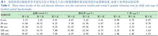 Three times results of the oral glucose tolerance test,the concurrent insulin,and serum C-peptide releasing tests in child with type 4 familial partial lipodystrophy