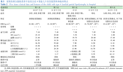 家族性部分脂肪营养不良综合征4型患儿5次住院资料和临床特点