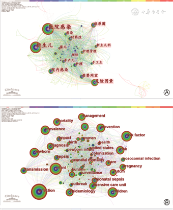 综上,本文利用CiteSpace 6.1.R2和VOSviewer 1.6.18两种可视化分析软件,对2010—2021年有关新生儿医院感染的中、英文文献进行分析,直观地了解国内外新生儿医院感染的研究热点与研究趋势,今后应继续加强国内外各主要研究团队的交流与合作,关注国际研究热点前沿,为该领域的深入研究提供方向。