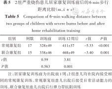 Comparison of 6-min walking distance between two groups of children with severe burns before and after home rehabilitation training