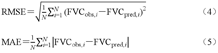 其中,FVCobs,i和FVCpred,i分别表示第i个观测和预测的FVC值。