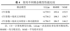 | CT影像+临床文本特征 | −6.736 2 | 190.3 | 150.7 |