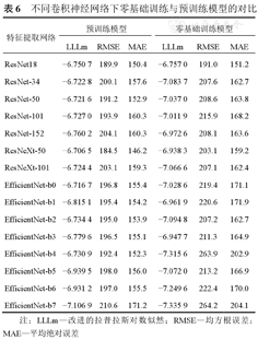 如表6所示,对于15种不同卷积神经网络,使用预训练模型的LLLm、RMSE和MAE评价指标均优于零基础训练模型。