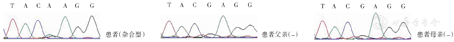全基因组测序检测到PSTPIP1基因的杂合突变(NM_003978:c.G748A:p.E250K),同时在赫曼斯基普德拉克综合征蛋白1(HPS1)基因中检测到复杂的杂合突变(NM_000195:c.C952G:p.L318V;NM_001322492:c.G775A:p.A259T),Sanger(第二代测序)验证结果:PSTPIP1 c.G748A p.E250K,患者父母也进行了全基因组测序检测,结果显示父母E250K位点的PSTPIP1基因为(-)。患者母亲检测到HPS1基因的杂合突变(NM_000195:c.C952G:p.L318V);患者的父亲在同一基因中发现了另一种杂合突变(NM_001322492:c.G775A:p.A259T)。患者及其父母全基因组测序结果见图2。结合患者临床表现及辅助检查,最终该患者诊断为PAMI综合征(伴PSTPIP1基因E250K位点突变)。使用TNF-α抑制剂依那西普(皮下注射50 mg,每周1次)治疗,1个月后皮疹及关节疼痛明显改善,但中性粒细胞仍减低。1年后患者自行停用依那西普,颜面部及颈部皮疹、痤疮复发,在左侧大腿皮肤自发性破溃伴疼痛。予以泼尼松50 mg/d联合他克莫司2 mg/d,皮肤破溃逐渐愈合,外周血中性粒细胞扔持续低。