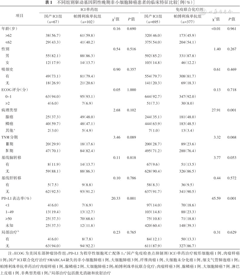探讨国产免疫检查点抑制剂(ICI)与帕博利珠单抗治疗驱动基因阴性晚期非小细胞肺癌的疗效和安全性差异。