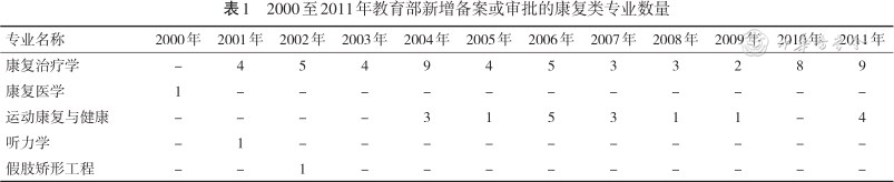 2000至2011年教育部新增备案或审批的康复类专业数量