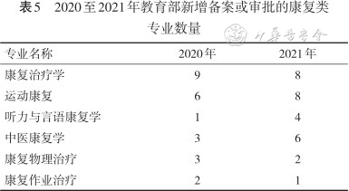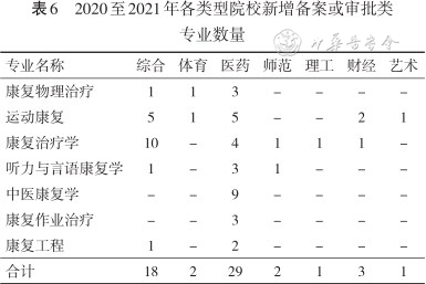 2020至2021年教育部新增备案或审批的康复类专业数量