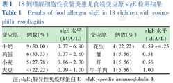 18例嗜酸细胞性食管炎患儿食物变应原sIgE检测结果