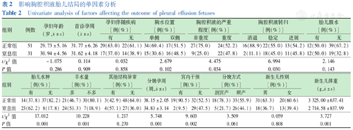 影响胸腔积液胎儿结局的单因素分析