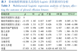 影响胸腔积液胎儿结局的Logistic多因素回归分析