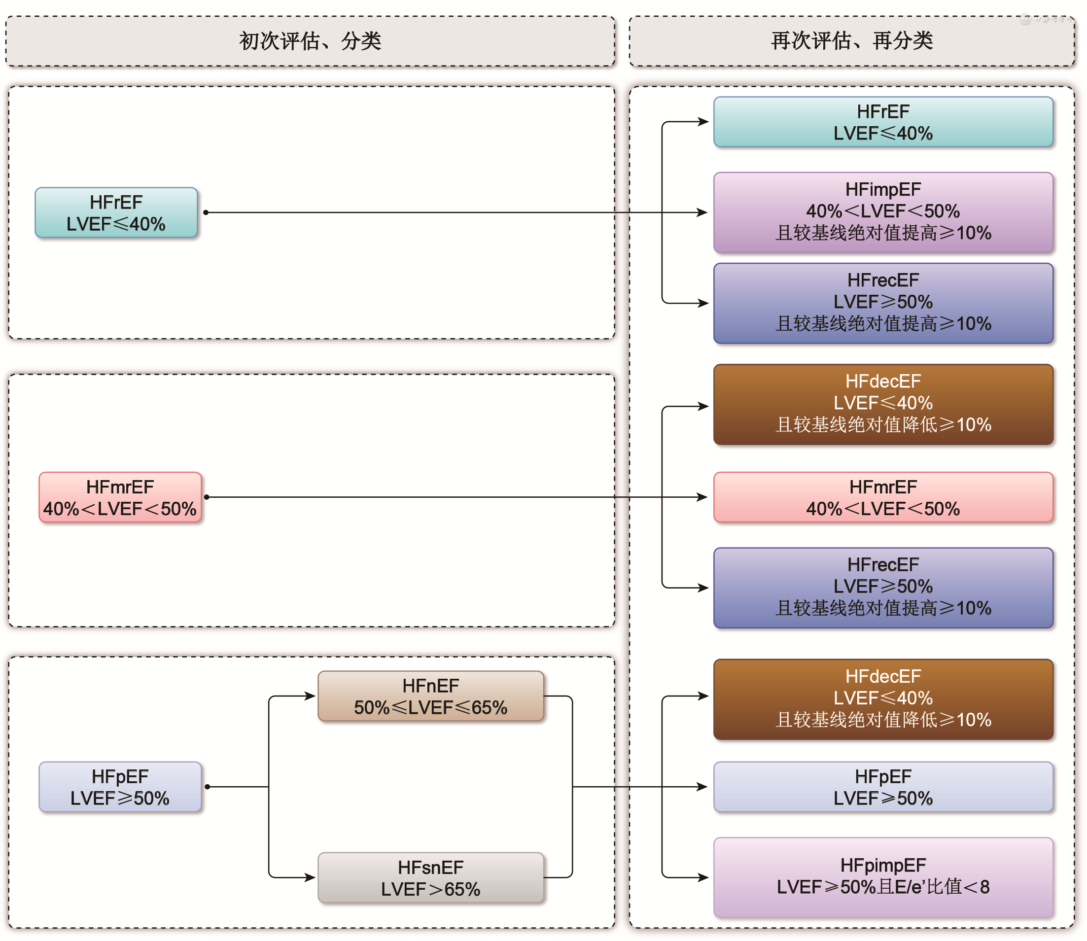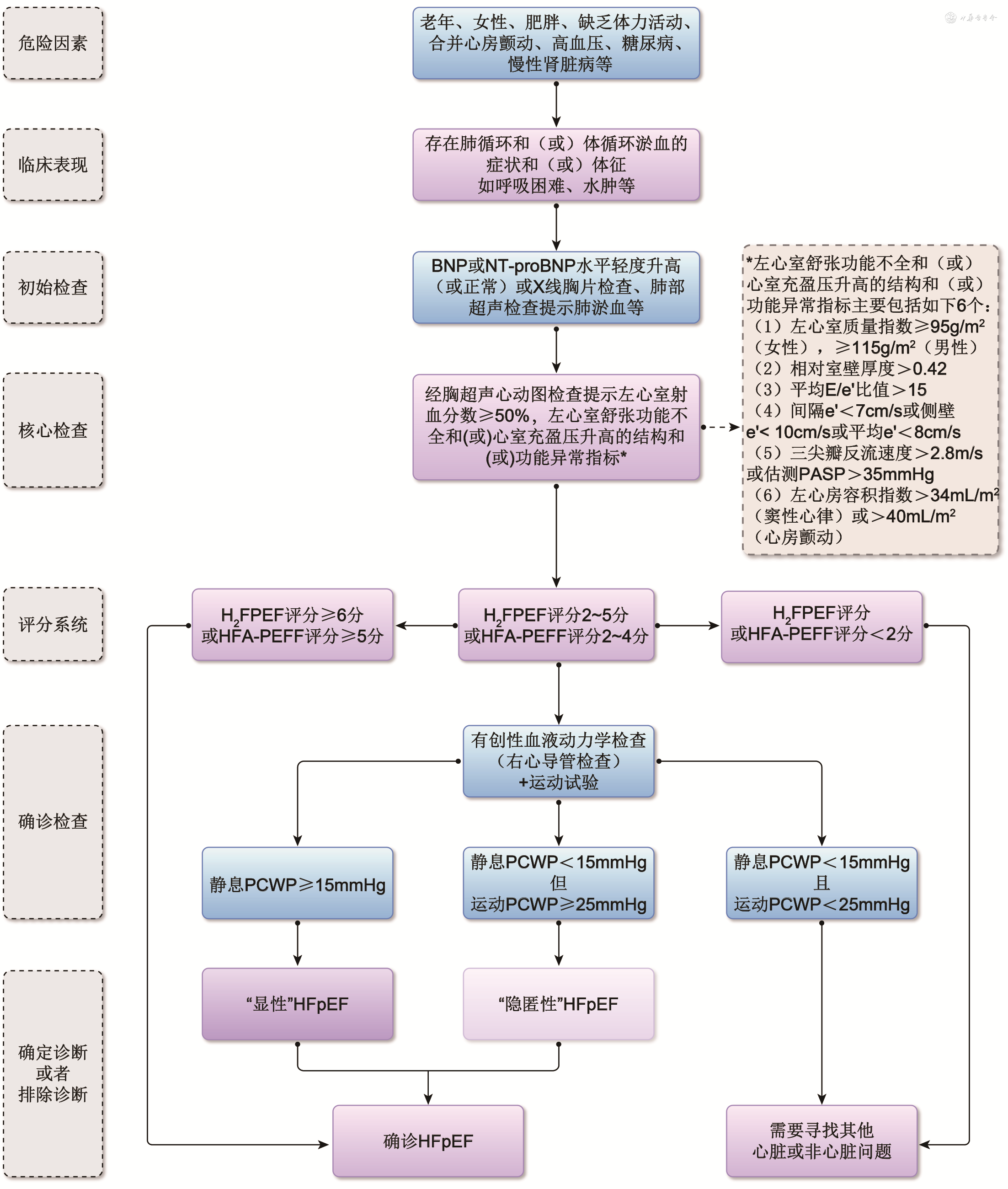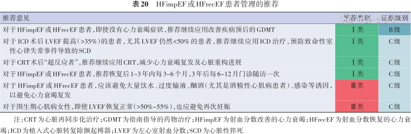 PPCM为既往无心肌病患者在妊娠晚期至产后数月内发生心衰,LVEF<45%,且排除了其他原因导致的心衰[307]。PPCM的危险因素包括:年龄>30岁、多胎多产、家族史、先兆子痫或子痫、贫血、高血压、T2DM、肥胖和长时间保胎等。影响预后的因素包括:LVEF<30%、LVEDD>60 mm和右心室受累等。PPCM预后好于其他HFrEF,心功能恢复率在不同的研究从23%~78%不等,恢复可发生在前3~6个月,也可延长至2年。